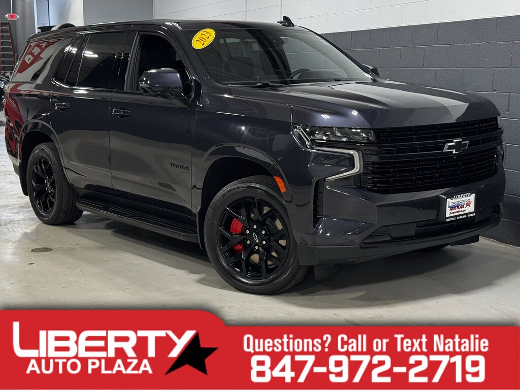 Dark Ash Metallic 2023 Chevrolet Tahoe RST 4WD 10-Speed Automatic with Overdrive EcoTec3 6.2L V8 1 OWNER CERTIFED CARFAX**, **LEATHER HEATED SEATS**, **ALLOY WHEELS**, **BACK UP CAMERA**, **NAVIGATION **, **CLEAN CERTIFIED CARFAX**, **3RD ROW SEATING**, **PREMIUM SOUND SYSTEM**, **NON SMOKER**, **LOCAL TRADE IN**, **BLUE TOOTH/ HANDS FREE**, **I POD CONNECT**, 4WD, Jet Black/Victory Red Leather, 10-Way Power Driver & Passenger Seat Adjusters, 1st & 2nd Row Color-Keyed Carpeted Floor Mats, 2nd Row Pwr Release 60/40 Split-Folding Bench Seat, 3rd Row 60/40 Power-Folding Split-Bench Seat, Adaptive Cruise Control, Apple CarPlay/Android Auto, Auto-Dimming Inside Rear-View Mirror, Black Name Plates (LPO), Bose 9-Speaker Stereo Audio System Feature, Bright Front & Rear Door Sill Plates, Cat-Back Performance Exhaust (LPO), Color-Keyed Carpeting Floor Covering, Driver & Front Outboard Passenger Airbags, Driver Alert Package, Dual Exhaust System, Emergency communication system: OnStar and Chevrolet connected services capable, Enhanced Automatic Emergency Braking, Enhanced Driver Information Center, Floor Console w/Storage Area, Front dual zone A/C, Hands-Free Rear Power Programmable Liftgate, HD Surround Vision, Heated 2nd Row Outboard Seats, Heated Steering Wheel, Heavy-Duty Front Brembo Brakes, High-Performance Suspension Package, Infotainment Display, Lane Change Alert w/Side Blind Zone Alert, LED Daytime Running Lamps, Luggage Rack Side Rails Delete, Luxury Package, Memory Settings, Memory Settings for Driver, Outside Heated Power-Adjustable Mirrors, Performance Air Intake System (LPO), Power Liftgate, Power passenger seat, Power Release 2nd Row Bucket Seats, Power Tilt & Telescopic Steering Column, Preferred Equipment Group 1SP, Radio: Chevrolet Infotainment 3 Premium System, Rear air conditioning, Rear Cross Traffic Alert, Rear Pedestrian Alert, Remote Start, RST Performance Edition, SiriusXM Radio w/360L, Sport Pedal Cover Kit (LPO), Torch Red Front & Rear Calipers, Universal Home Remote, Wheels: 20" x 9" High Gloss Black Aggressive, Wireless Charging, Wrapped Steering Wheel.
