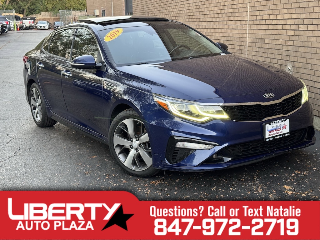 Horizon Blue 2019 Kia Optima S FWD 6-Speed Automatic with Sportmatic 2.4L I4 DGI DOHC **ALLOY WHEELS**, **BACK UP CAMERA**, **PREMIUM SOUND SYSTEM**, **LOCAL TRADE IN**, **SUNROOF/MOONROOF**, **BLUE TOOTH/ HANDS FREE**, **I POD CONNECT**, Black Cloth, Apple CarPlay & Android Auto, Auto-dimming Rear-View mirror, Automatic temperature control, Emergency communication system: UVO eServices, Front dual zone A/C, LED Overhead Front & Rear Reading Lights, Panoramic Sunroof, Power driver seat, Radio: AM/FM/MP3/SiriusXM Audio System, S Panoramic Sunroof Package.