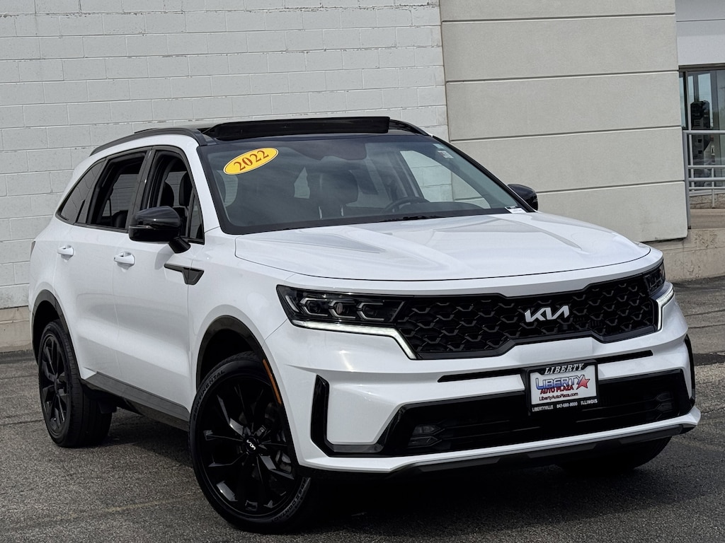 Glacial White Pearl 2022 Kia Sorento SX AWD 8-Speed DCT 2.5L I4 DGI Turbocharged DOHC 16V LEV3-ULEV70 281hp 1 OWNER CERTIFED CARFAX**, **LEATHER HEATED SEATS**, **ALLOY WHEELS**, **BACK UP CAMERA**, **NAVIGATION **, **CLEAN CERTIFIED CARFAX**, **ALL WHEEL DRIVE**, **3RD ROW SEATING**, **2ND ROW CAPTIANS CHAIRS**, **PREMIUM SOUND SYSTEM**, **NON SMOKER**, **LOCAL TRADE IN**, **SUNROOF/MOONROOF**, **BLUE TOOTH/ HANDS FREE**, **I POD CONNECT**, AWD, Apple CarPlay & Android Auto, Automatic temperature control, Emergency communication system: UVO Link, Front dual zone A/C, Power driver seat, Power Liftgate, Rear air conditioning.