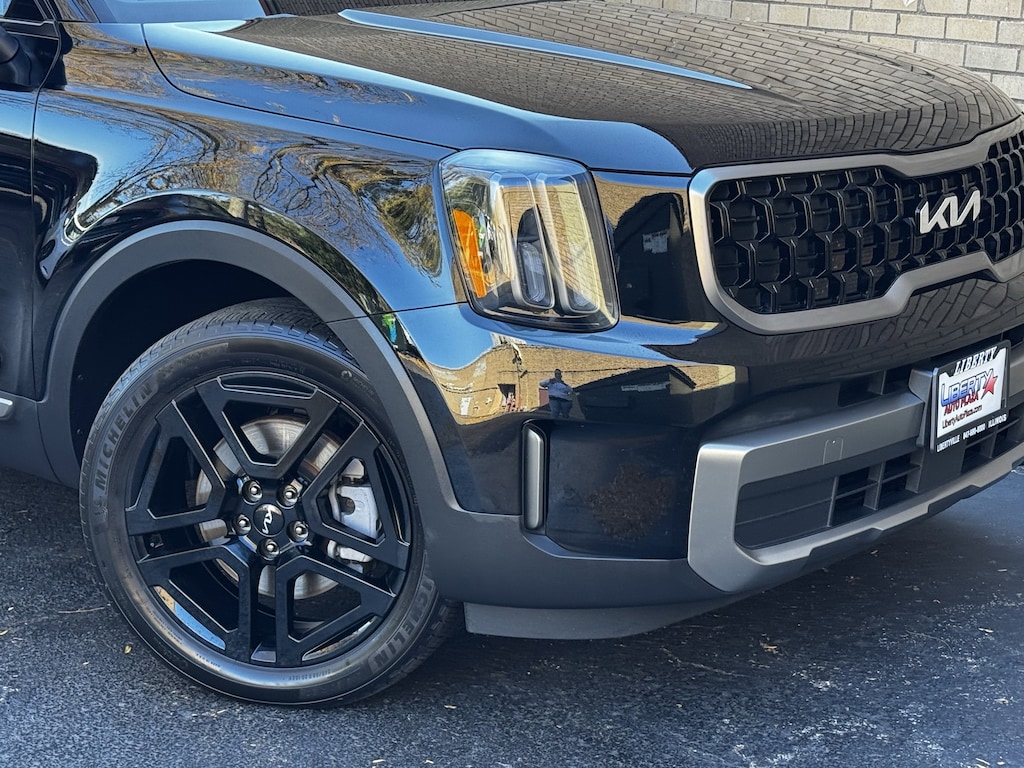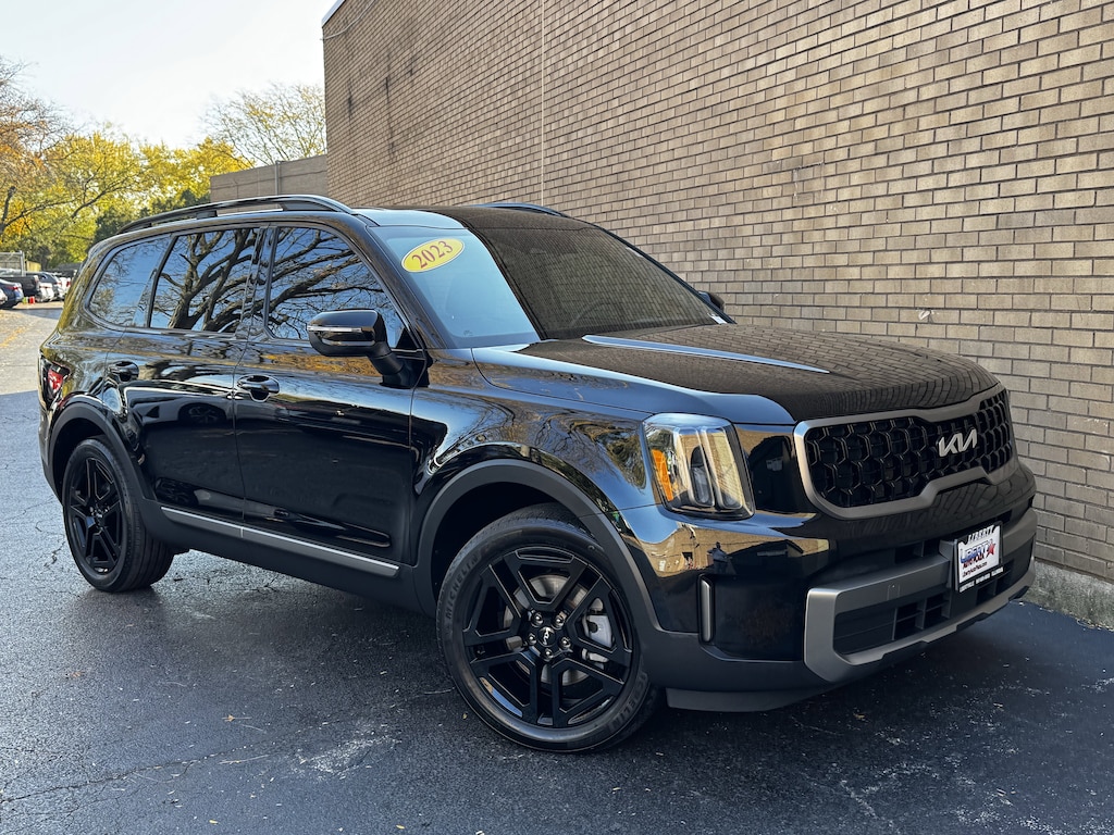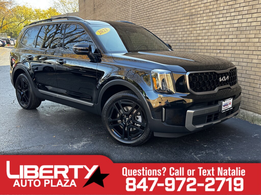 Ebony Black 2023 Kia Telluride EX X-Line AWD 8-Speed Automatic 3.8L V6 DGI DOHC Dual CVVT 1 OWNER CERTIFED CARFAX**, **LEATHER HEATED SEATS**, **ALLOY WHEELS**, **BACK UP CAMERA**, **NAVIGATION **, **CLEAN CERTIFIED CARFAX**, **ALL WHEEL DRIVE**, **3RD ROW SEATING**, **PREMIUM SOUND SYSTEM**, **NON SMOKER**, **LOCAL TRADE IN**, **SUNROOF/MOONROOF**, **BLUE TOOTH/ HANDS FREE**, **I POD CONNECT**, HEATED AND COOLED FRONT SEATS, Apple CarPlay & Android Auto, Auto-dimming Rear-View mirror, Auto-leveling suspension, Automatic temperature control, Emergency communication system: 911 Connect, Front dual zone A/C, Heated steering wheel, Power driver seat, Power Liftgate, Power passenger seat, Radio: AM/FM Display Audio System, Rear air conditioning, Rear audio controls, Smart Key w/ Push Button and Remote Start, Wheels: 20" x 7.5" Black Finish X-LINE Exclusive.