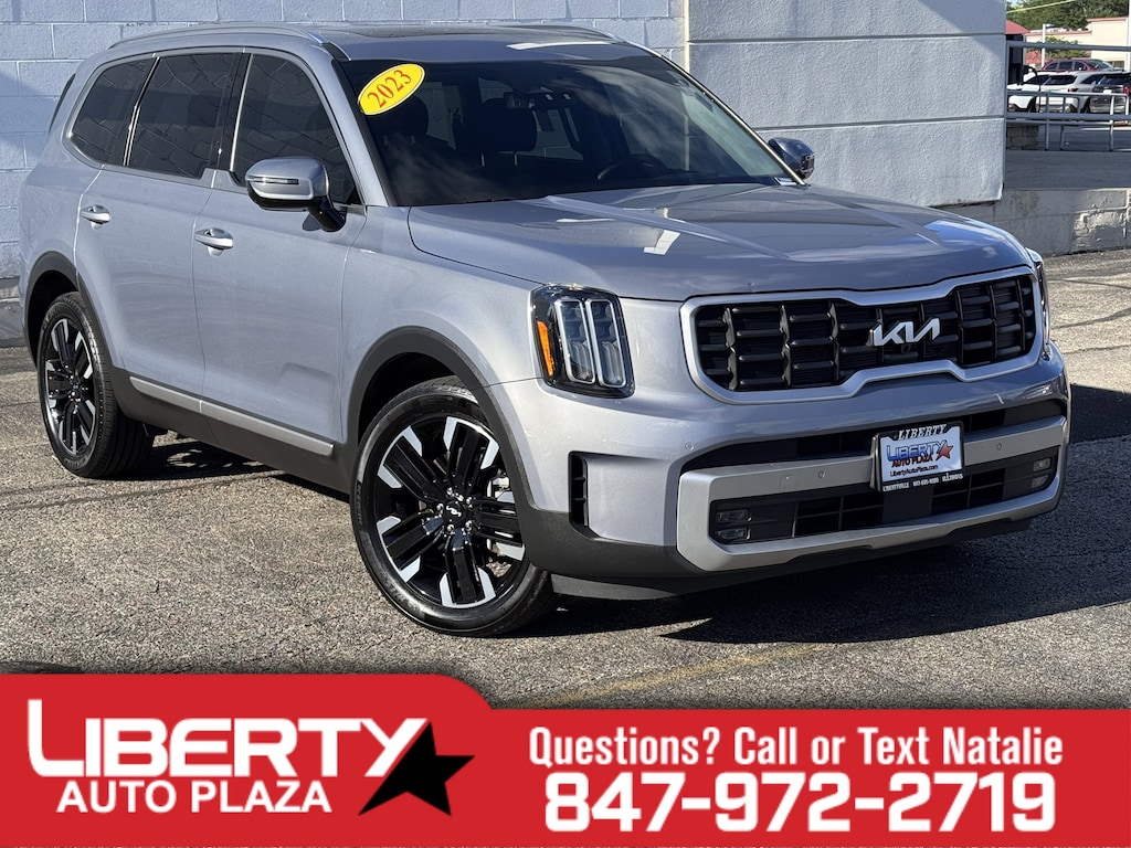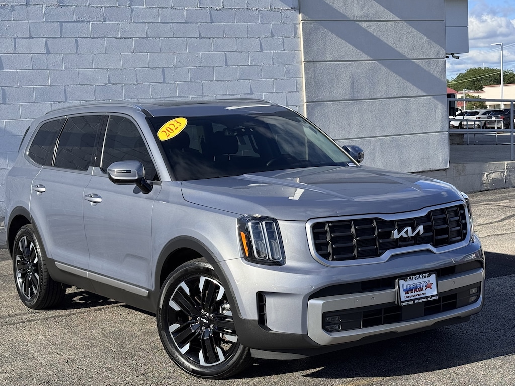 Everlasting Silver 2023 Kia Telluride SX-Prestige AWD 8-Speed Automatic 3.8L V6 DGI DOHC Dual CVVT 1 OWNER CERTIFED CARFAX**, **LEATHER HEATED SEATS**, **ALLOY WHEELS**, **BACK UP CAMERA**, **NAVIGATION **, **CLEAN CERTIFIED CARFAX**, **ALL WHEEL DRIVE**, **3RD ROW SEATING**, **2ND ROW CAPTIANS CHAIRS**, **PREMIUM SOUND SYSTEM**, **LOCAL TRADE IN**, **SUNROOF/MOONROOF**, **BLUE TOOTH/ HANDS FREE**, **I POD CONNECT**, HEATED AND COOLED FRONT SEATS, 10 Speakers, Apple CarPlay & Android Auto, Auto-dimming Rear-View mirror, Automatic temperature control, Front dual zone A/C, harman/kardon® Speakers, Heads-Up Display, Heated rear seats, Heated steering wheel, Memory seat, Power driver seat, Power Liftgate, Power passenger seat, Radio: AM/FM harman/kardon Audio System, Rear air conditioning.
