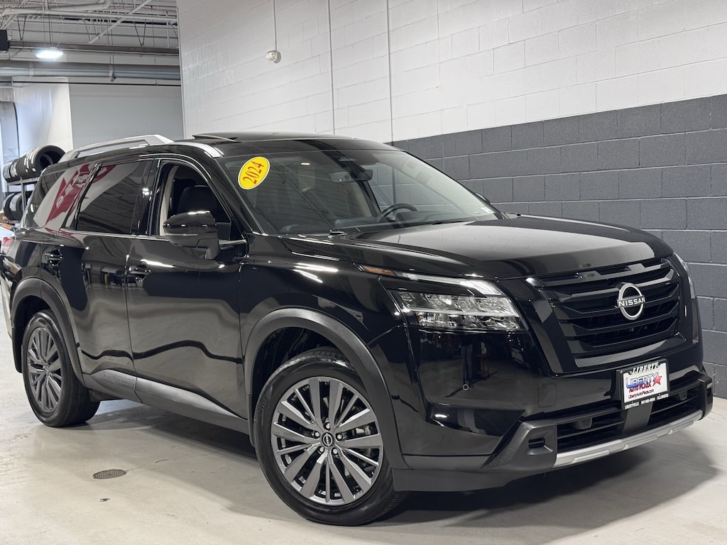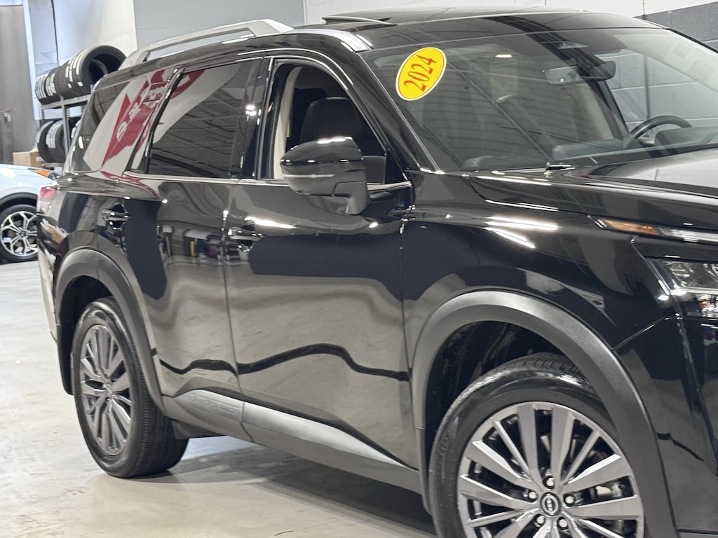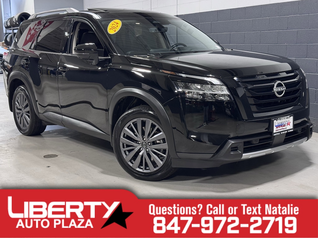 Super Black 2024 Nissan Pathfinder SL 4WD 9-Speed Automatic 3.5L V6 DOHC 1 OWNER CERTIFED CARFAX**, **LEATHER HEATED SEATS**, **ALLOY WHEELS**, **BACK UP CAMERA**, **NAVIGATION **, **CLEAN CERTIFIED CARFAX**, **3RD ROW SEATING**, **2ND ROW CAPTIANS CHAIRS**, **PREMIUM SOUND SYSTEM**, **NON SMOKER**, **LOCAL TRADE IN**, **SUNROOF/MOONROOF**, **BLUE TOOTH/ HANDS FREE**, **I POD CONNECT**, 4WD, 20" Painted Alloy Wheels, 2nd-Row Captain Chairs, 2nd-Row Rear Headrest, Auto-dimming Rear-View mirror, Automatic temperature control, Black Appearance Package, Black Grille (K10), Black Liftgate Emblems, Bose Premium Audio System, Front dual zone A/C, Heated Rear Seats, Heated steering wheel, NissanConnect featuring Apple CarPlay and Android Auto, NissanConnect w/Navigation & Services, Panoramic Moonroof, Power driver seat, Power Liftgate, Power passenger seat, Rear air conditioning, SL Premium Package, Tow Hitch Receiver & Harness.